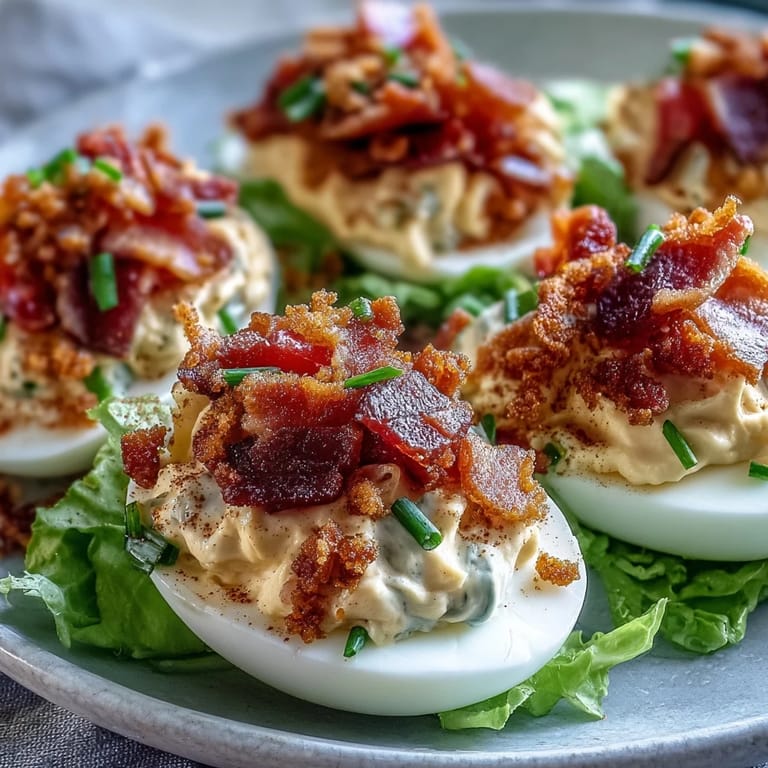 Save If you're a fan of the classic BLT sandwich and love the creamy bite of deviled eggs, prepare to fall for BLT Deviled Eggs with Crispy Bacon Crumbles. These irresistible appetizers take all the savory and fresh notes from a beloved American classic and pack them into perfectly portioned, party-ready eggs. Imagine lush, tangy yolk filling, a confetti of juicy tomatoes, a crown of crispy bacon, and a fresh, green pop from romaine—all balanced on a tender egg white. It’s comfort food with personality, guaranteed to be the first thing gone on the appetizer table!
