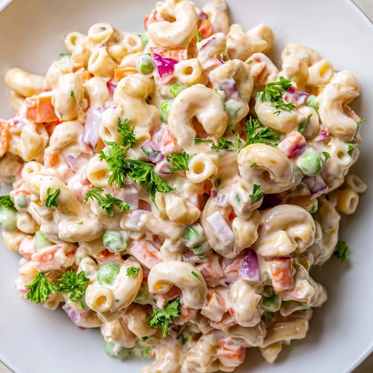 Save Summer potlucks always have one dish that disappears first, and this macaroni salad is that crowd favorite. I learned this recipe from my neighbor who brought it to every block party, and people would literally ask her days in advance if she was making it again.