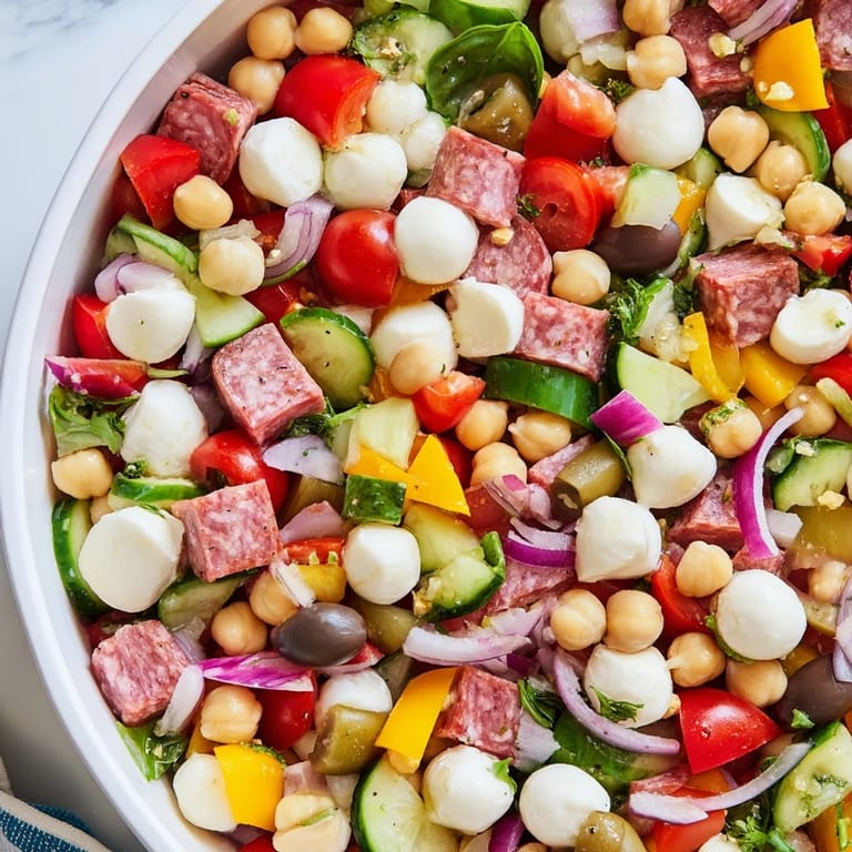 For a vegetarian version, try marinated artichoke hearts, roasted red peppers, or grilled vegetables. Prosciutto, pancetta, or pepperoni also work well if you enjoy other cured meats. Chickpeas already provide plenty of protein.